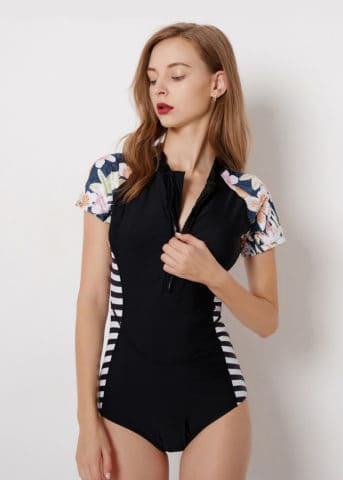 Fellon Stripe Rashguard Subject to 0.5-1inch / 2-3cm difference. Material composition: Polyester, Spandex Swimwear Type: 1 Piece Material: Chinlon Bra Style: Padded Support