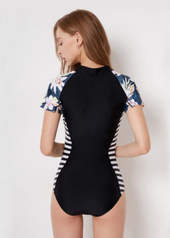Pickering Stripe Floral Swimwear Subject to 0.5-1inch / 2-3cm difference. Material composition: Polyester, Spandex Swimwear Type: 1 Piece Material: Chinlon Bra Style: Padded